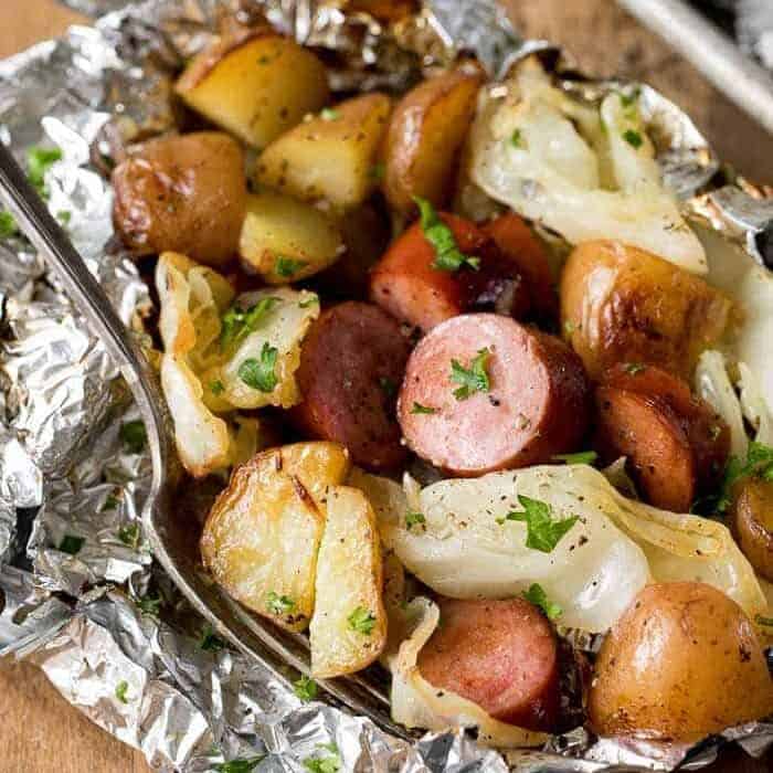 Cabbage and Sausage Foil Packets